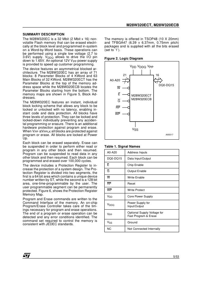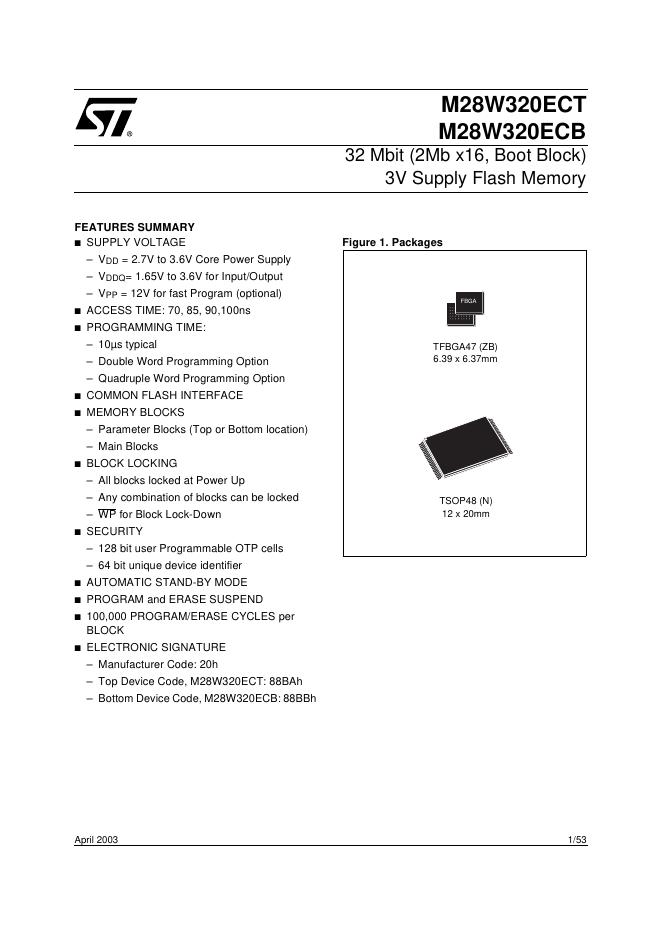 ST M28W320ECT M28W320ECB 32 Mbit (2Mb x16, Boot Block) 3V Supply Flash Memory 数据手册.pdf
