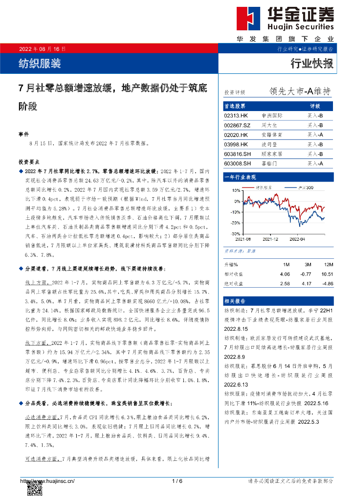 华金证券:纺织服装行业快报:7月社零总额增速放缓,地产数据仍处于筑底阶段.pdf