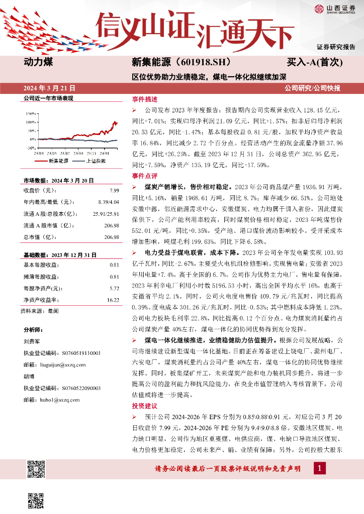 山西证券:新集能源(601918)-区位优势助力业绩稳定,煤电一体化拟继续加深.pdf