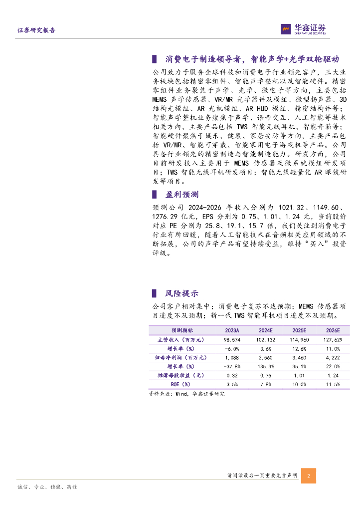 华鑫证券:歌尔股份(002241)-公司事件点评报告:消费电子行业复苏带动业绩修复,智能声学+智能光学双轮驱动.pdf