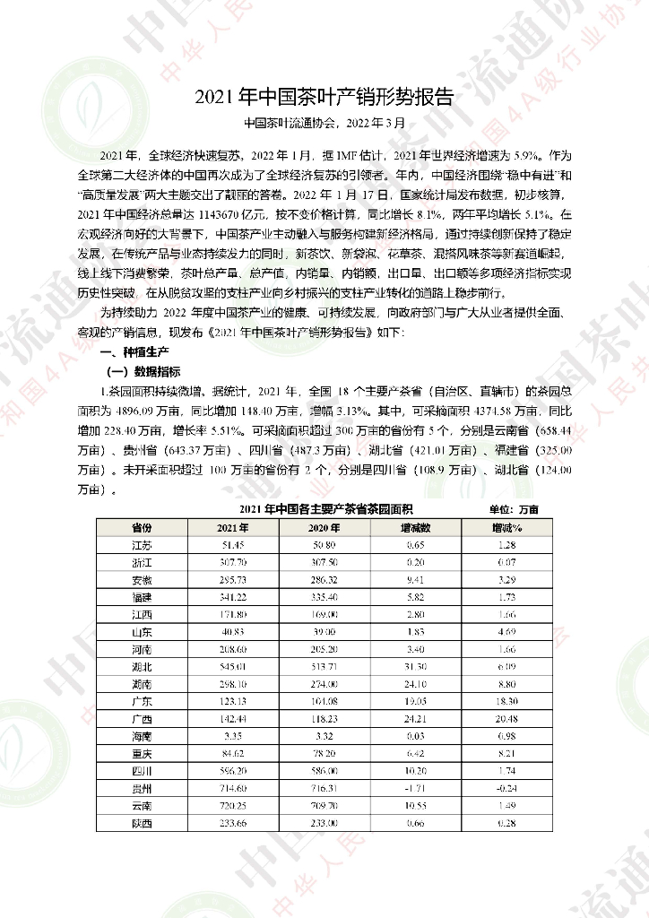 中国茶叶流通协会:2021年中国茶叶产销形势报告.pdf