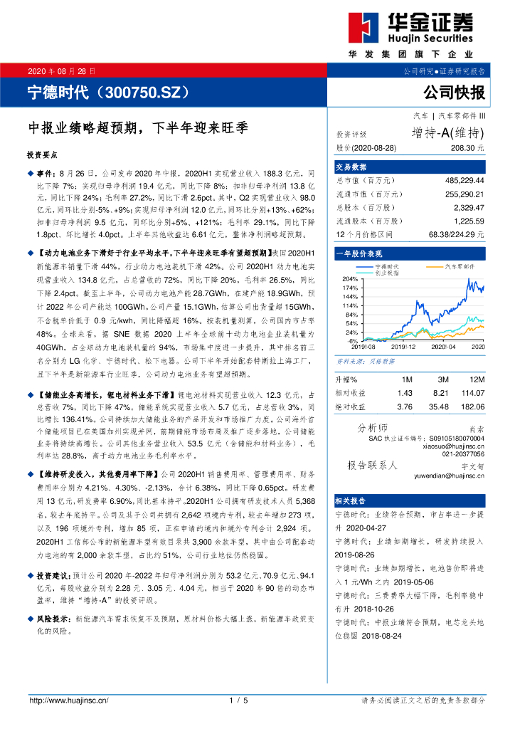 华金证券:宁德时代(300750)-中报业绩略超预期,下半年迎来旺季.pdf