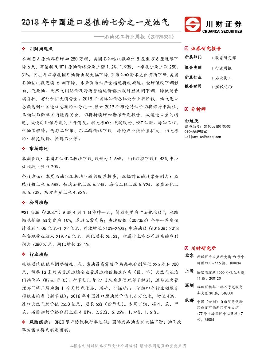 川财证券:石油化工行业周报:2018年中国进口总值的七分之一是油气.pdf