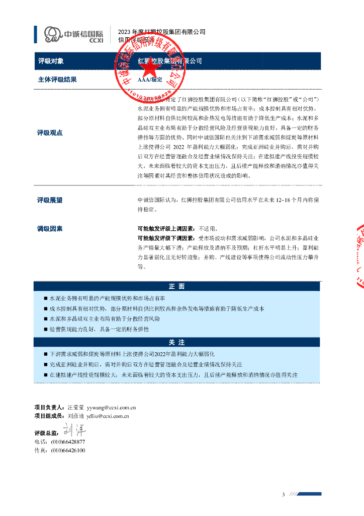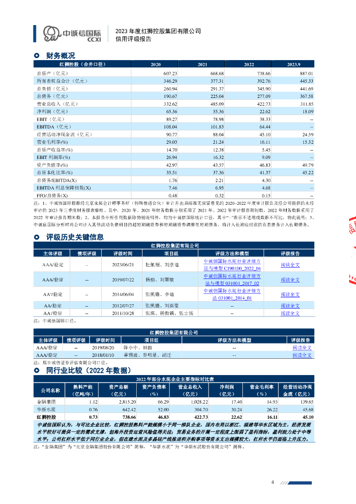 中诚信:2023年度红狮控股集团有限公司信用评级报告.pdf