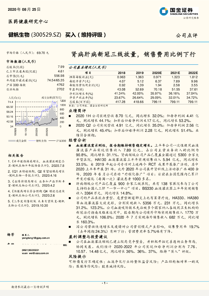 国金证券:健帆生物(300529)-肾病肝病新冠三线放量,销售费用比例下行.pdf