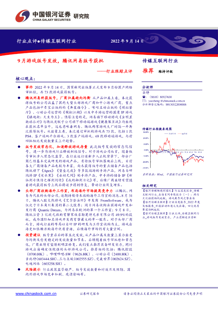中国银河:传媒互联网行业跟踪点评:9月游戏版号发放,腾讯网易版号获批.pdf