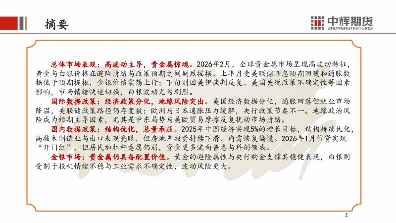 中辉期货:2026年3月宏观金银月报:金银惊魂未定,国内数据有优化,海外聚焦地缘风险-260303.pdf