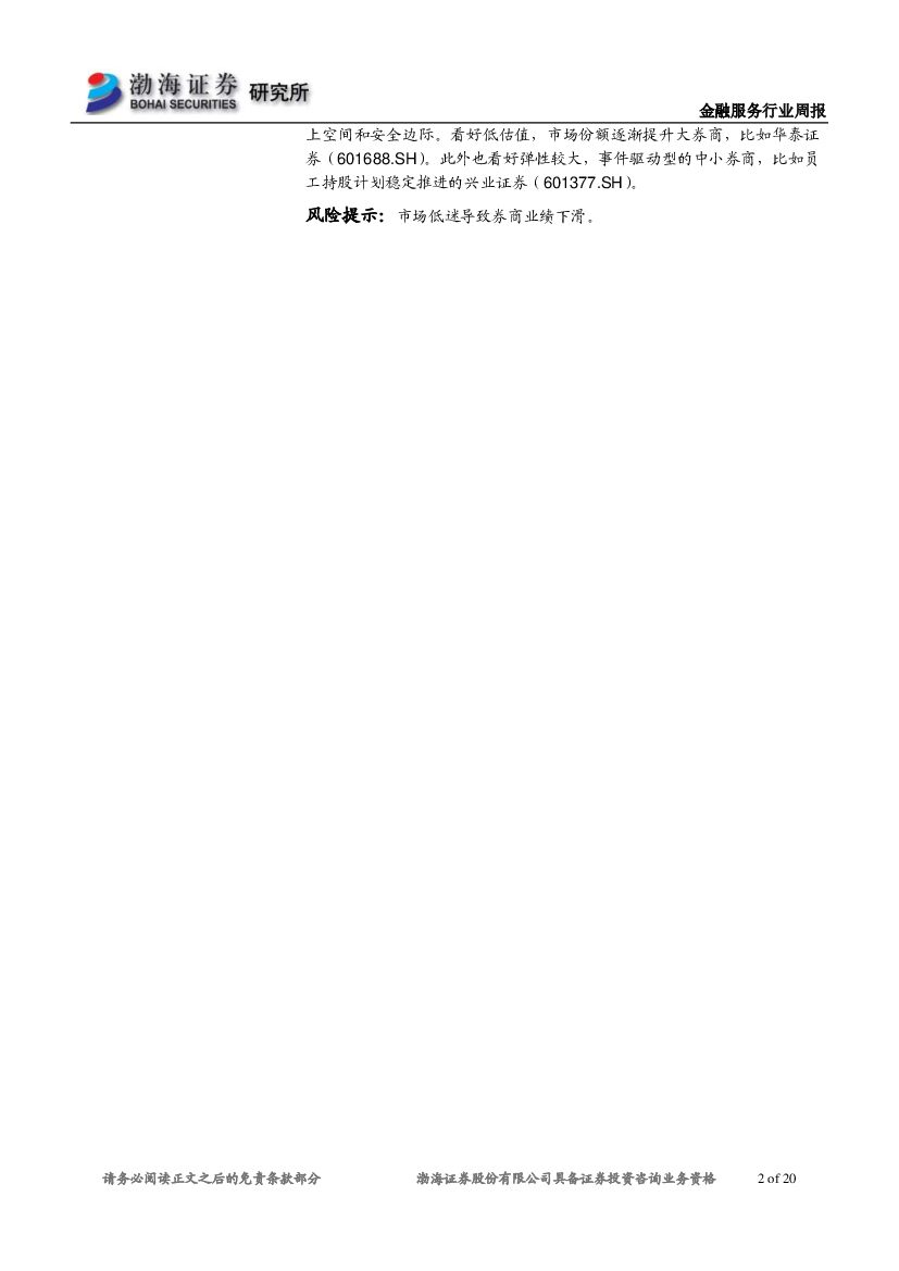 渤海证券:非银行业周报:看好基本面逐渐向好、估值处底部非银龙头.pdf