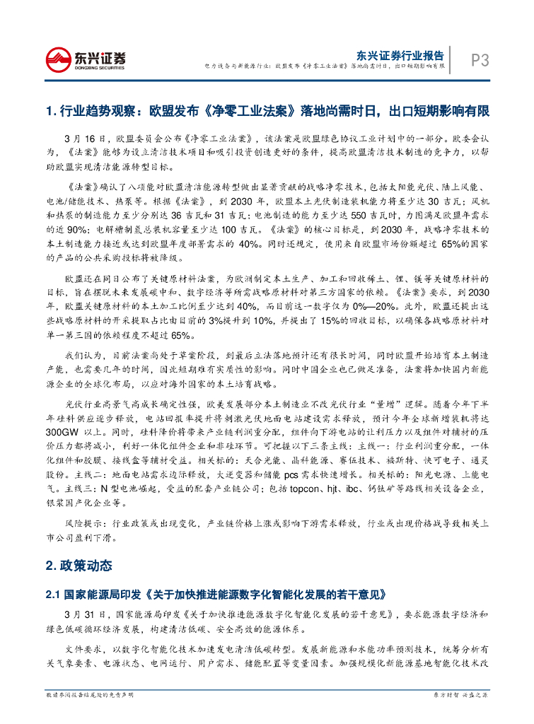 东兴证券:电力设备与新能源行业月报(2023年3月):欧盟发布《净零工业法案》落地尚需时日,出口短期影响有限.pdf