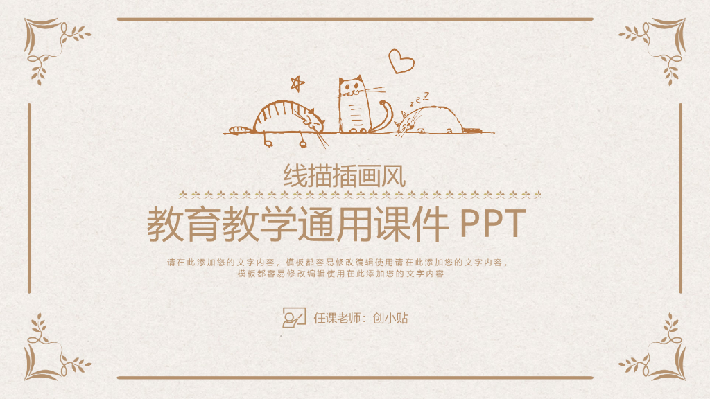 手绘风线稿教育教学通用课件PPT模板.ppt