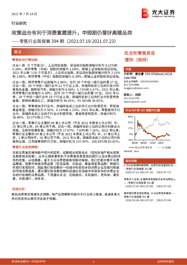 光大证券:零售行业周报第394期:政策出台有利于消费意愿提升,中短期仍看好高端品类.pdf