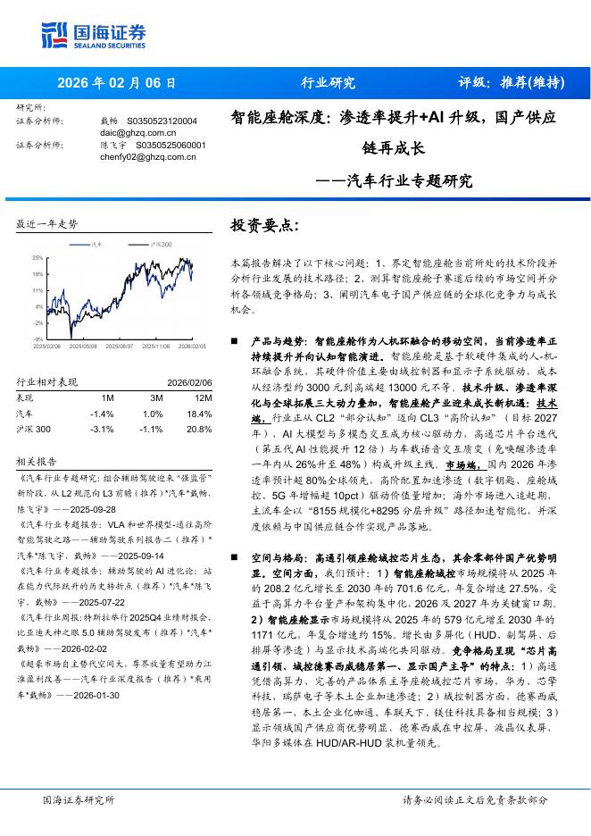 国海证券:汽车行业专题研究:智能座舱深度,渗透率提升+AI升级,国产供应链再成长.pdf