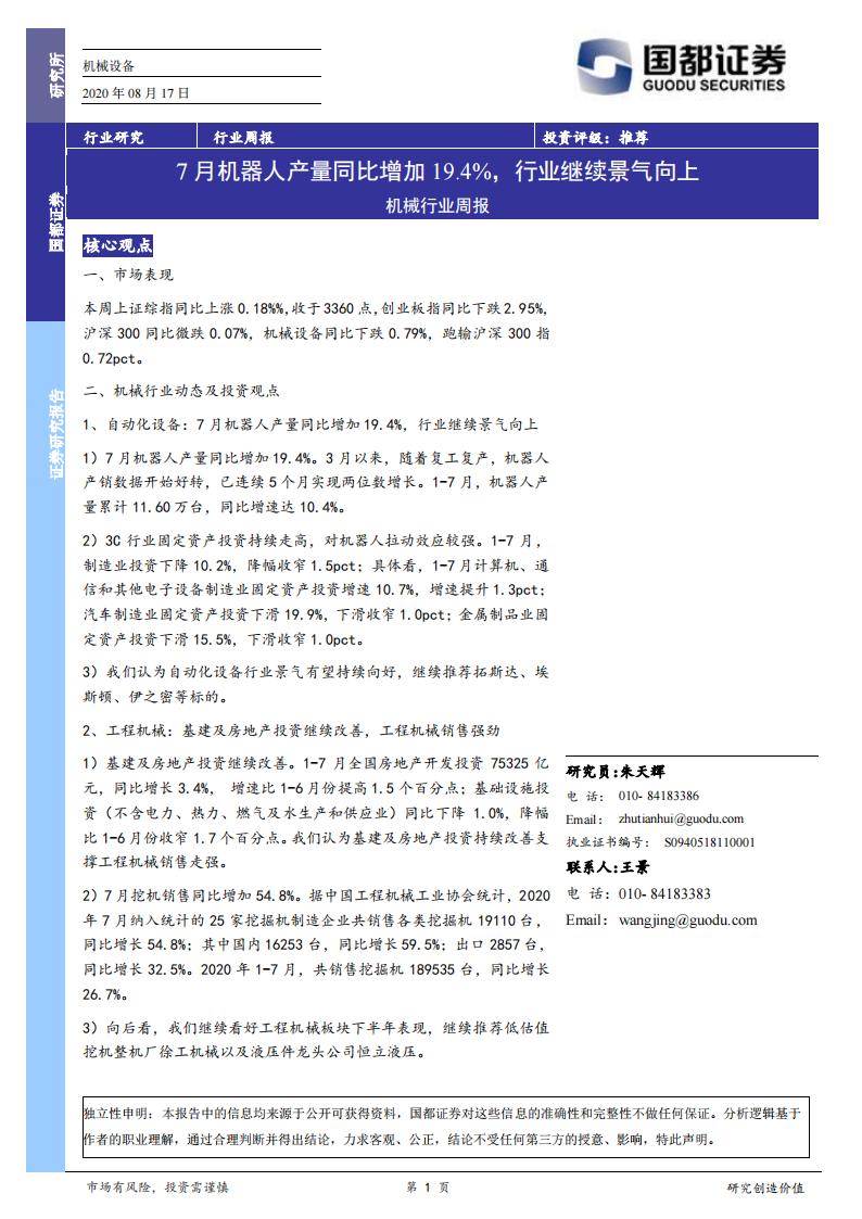 国都证券:机械行业周报:7月机器人产量同比增加19.4%,行业继续景气向上.pdf