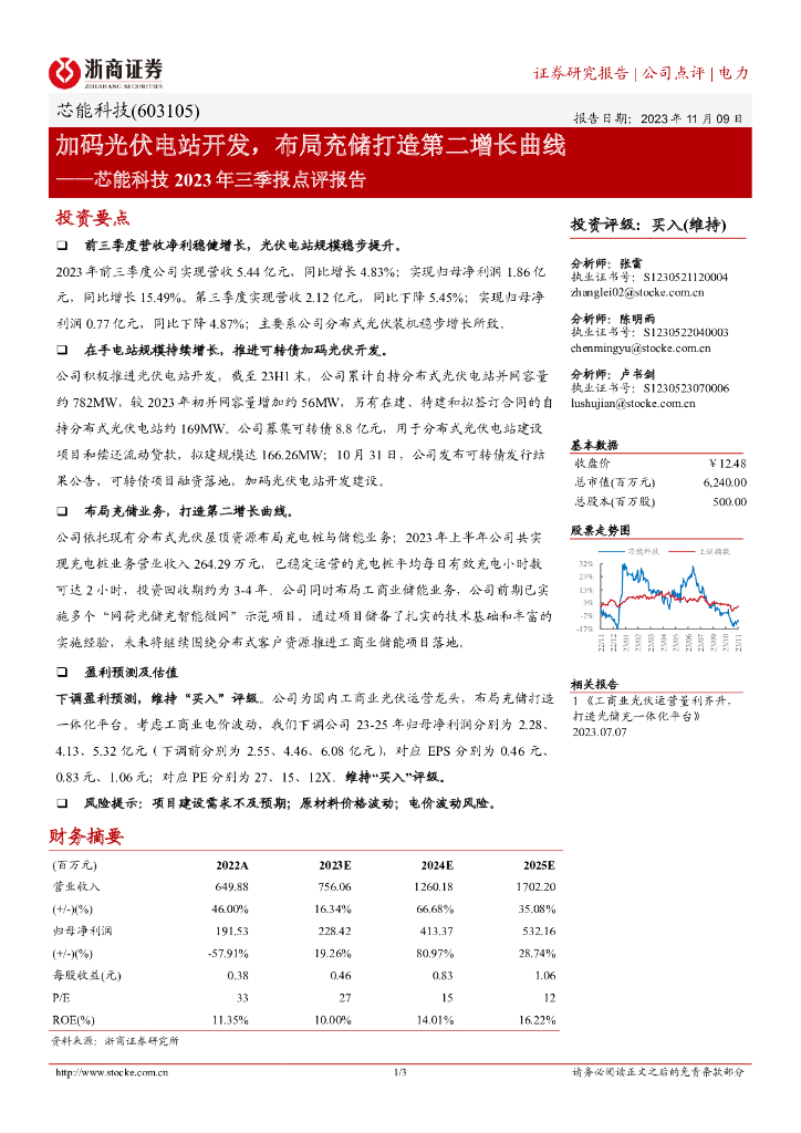 浙商证券:芯能科技2023年三季报点评报告:加码光伏电站开发,布局充储打造第二增长曲线.pdf