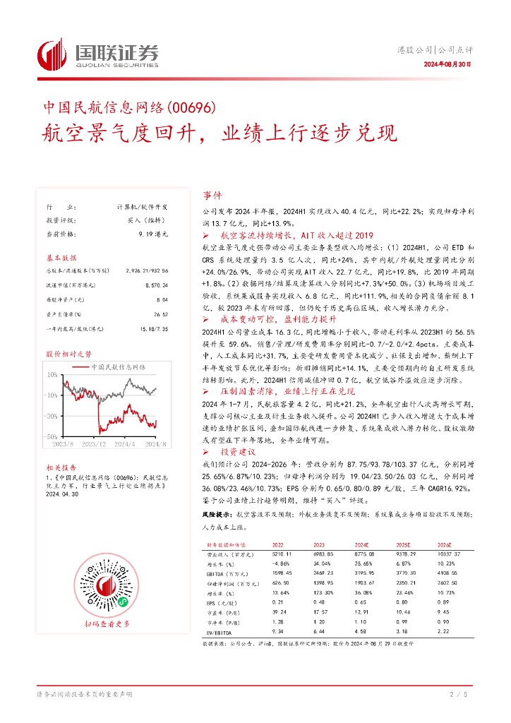 国联证券:中国民航信息网络(00696)港股公司研究报告-航空景气度回升,业绩上行逐步兑现.pdf