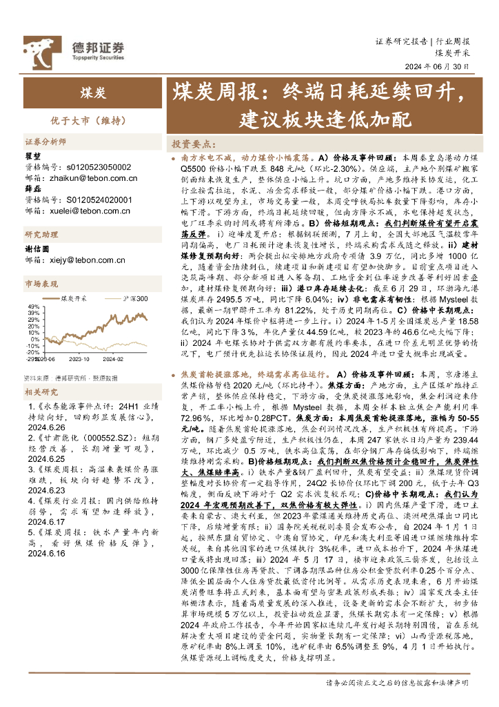 德邦证券:煤炭行业周报:终端日耗延续回升,建议板块逢低加配.pdf