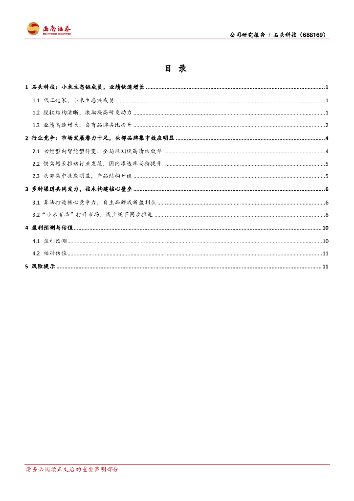 西南证券:石头科技(688169)-家电科创板第一标的,小米生态链成员.pdf