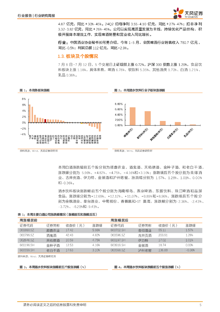 天风证券:食品饮料行业酒水饮料周报:业绩预告相继出炉,预计Q2业绩分化明显.pdf