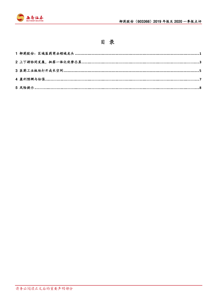 西南证券:柳药股份(603368)-业绩保持稳定增长,工业打开成长空间.pdf