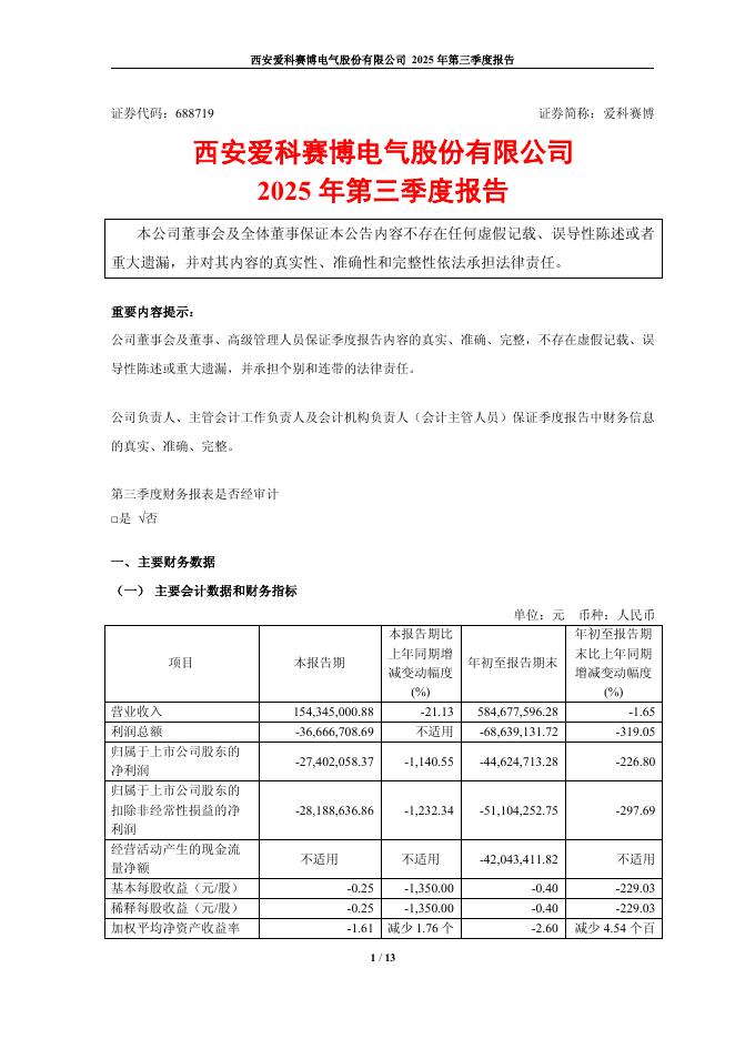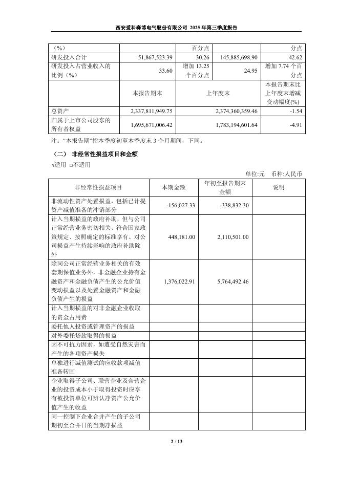 688719-爱科赛博:西安爱科赛博电气股份有限公司2025年第三季度报告.pdf