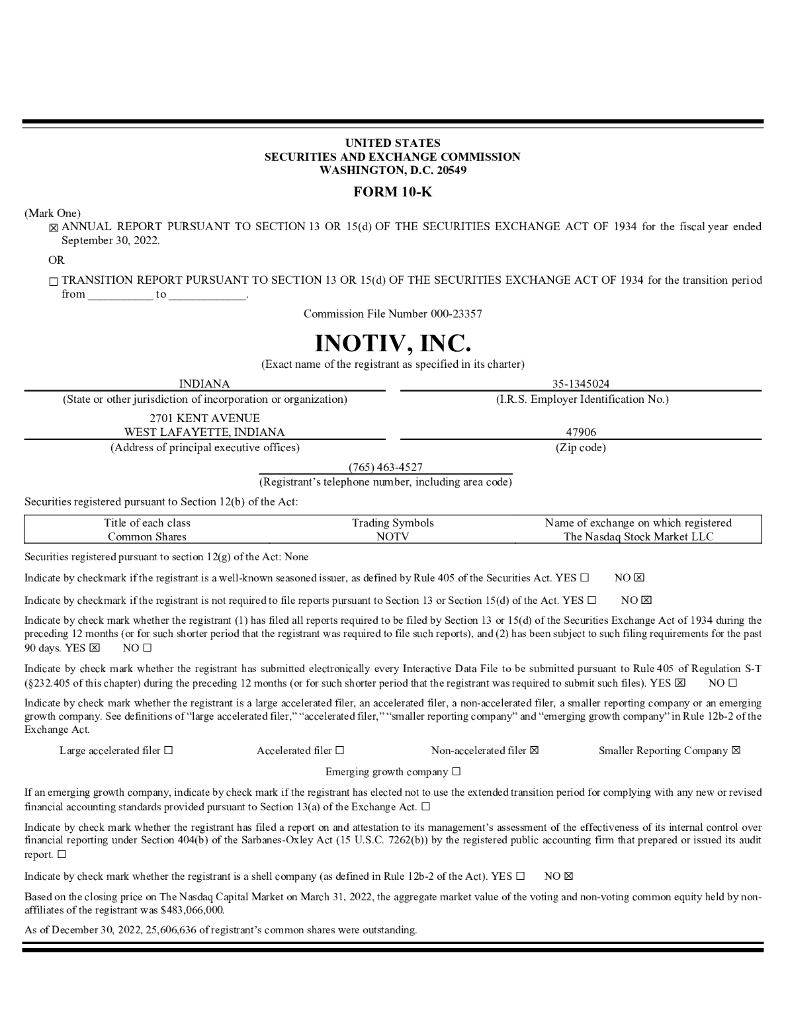 Inotiv, Inc.(NOTV)2022财年年度报告(英文版).pdf