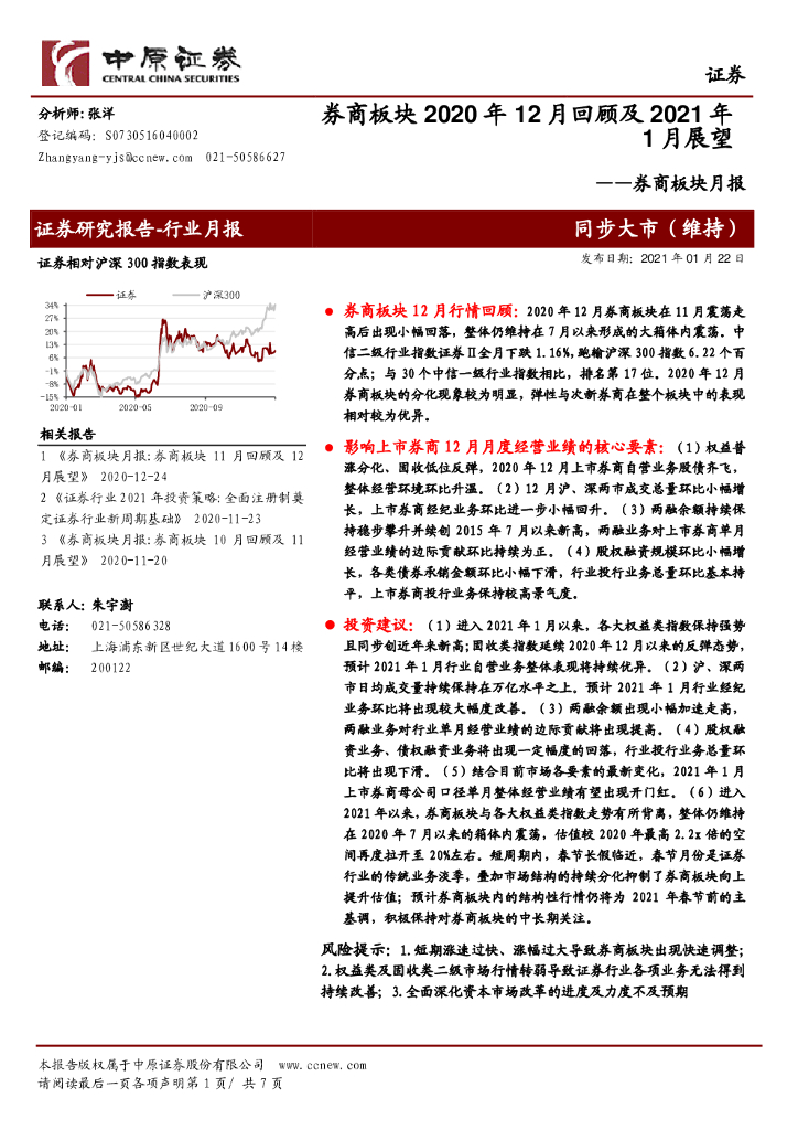 中原证券:券商板块月报:券商板块2020年12月回顾及2021年1月展望.pdf