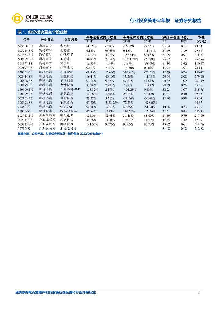 财通证券:零售版块22年中报业绩总结:跨境&商超边际修复,产业互联网持续高增.pdf