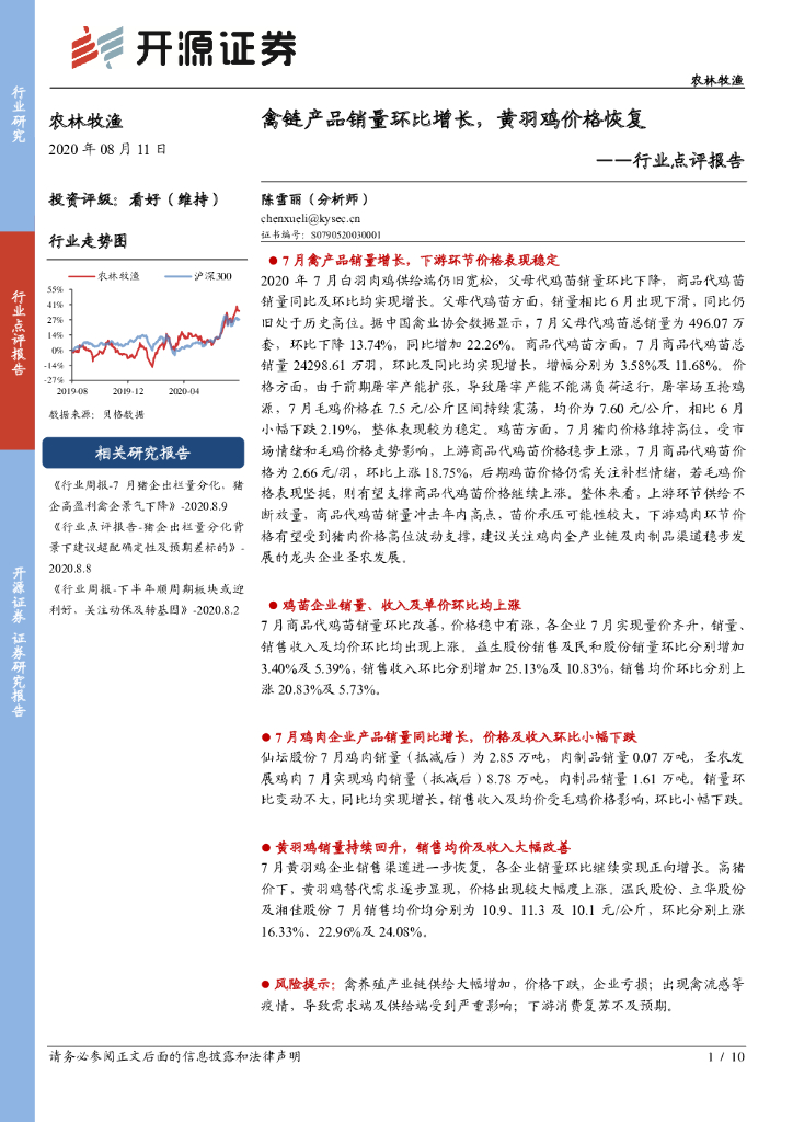 开源证券:农林牧渔行业点评报告:禽链产品销量环比增长,黄羽鸡价格恢复.pdf