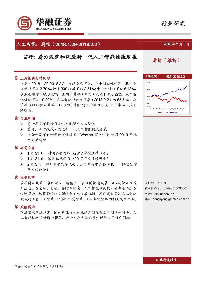 华融证券:人工智能行业周报:苗圩:着力规范和促进新一代人工智能健康发展.pdf