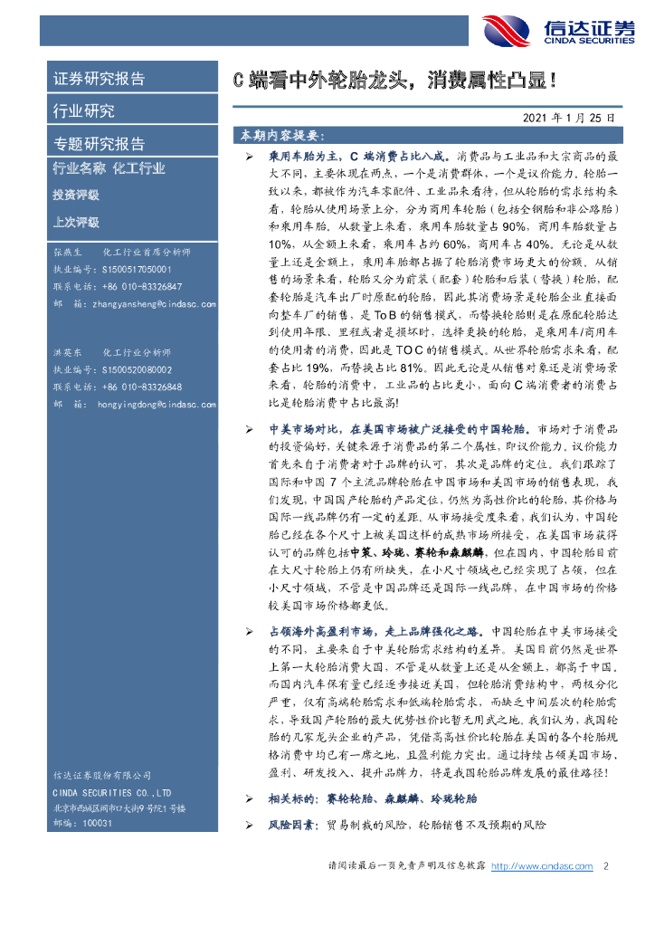 信达证券:化工行业:C端看中外轮胎龙头,消费属性凸显!.pdf