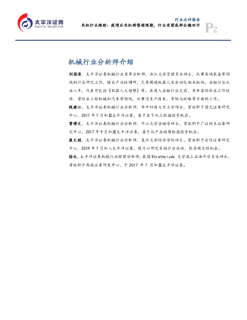 太平洋证券:农机行业跟踪:疫情后农机销售超预期,行业有望底部企稳回升.pdf