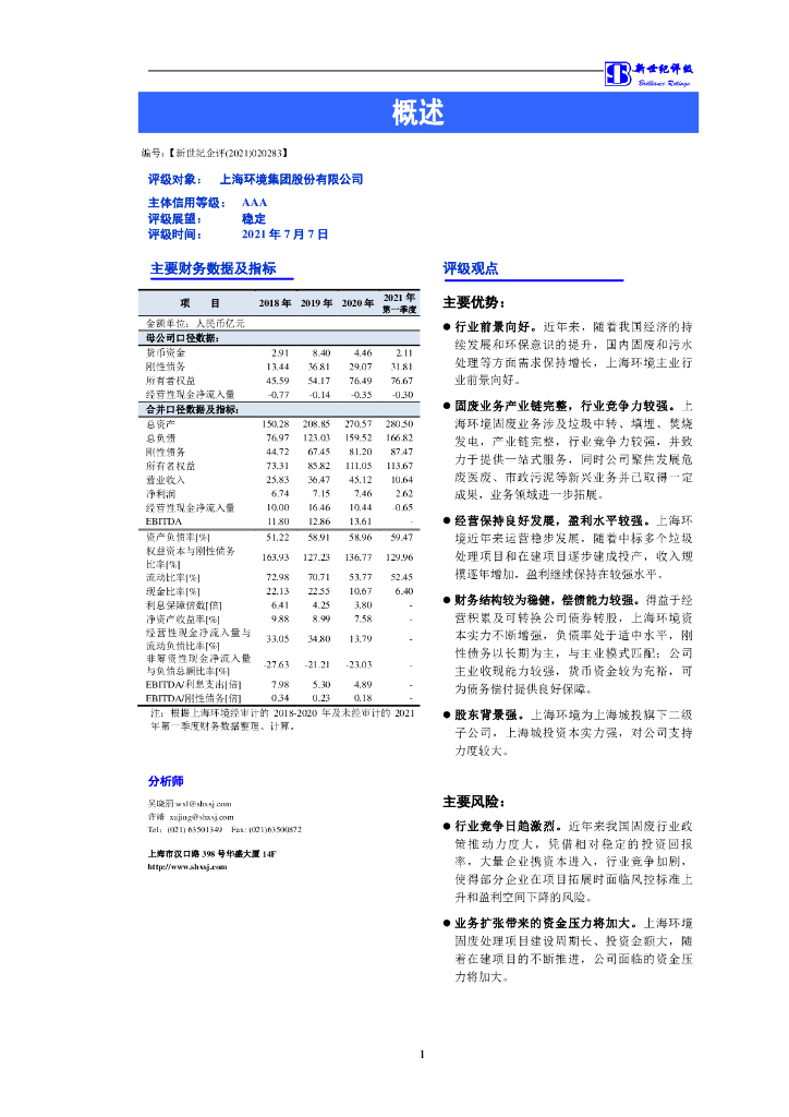 新世纪:上海环境集团股份有限公司主体评级报告及跟踪评级安排.pdf