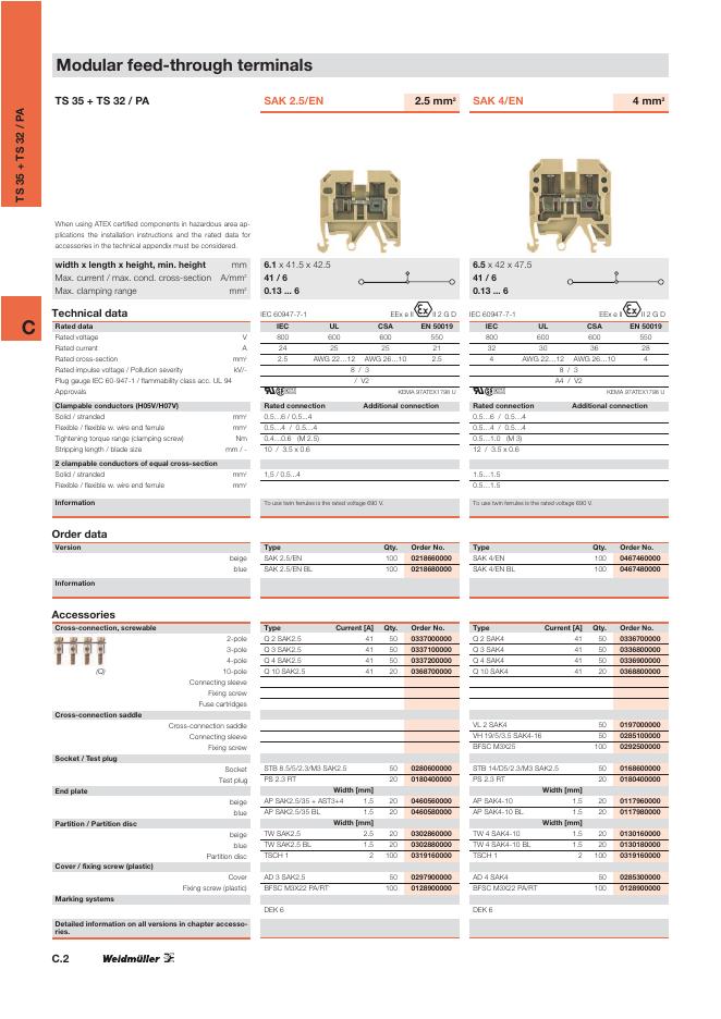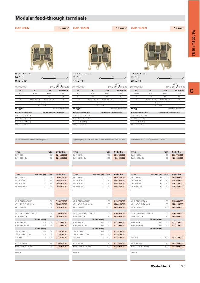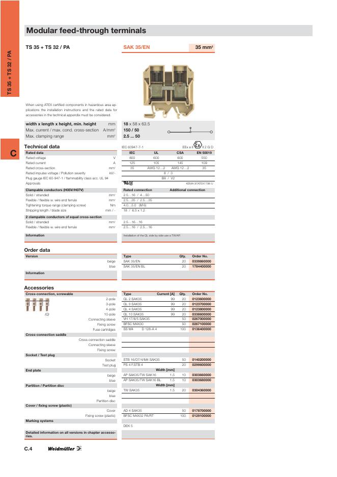 WEIDMULLER Modular feed-through terminals TS 35 + TS 32 / PA 数据手册.pdf