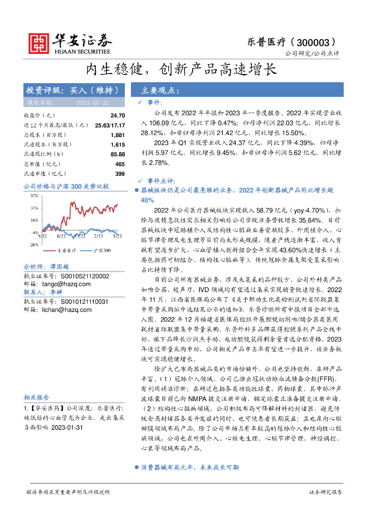 华安证券:乐普医疗(300003)-内生稳健,创新产品高速增长.pdf