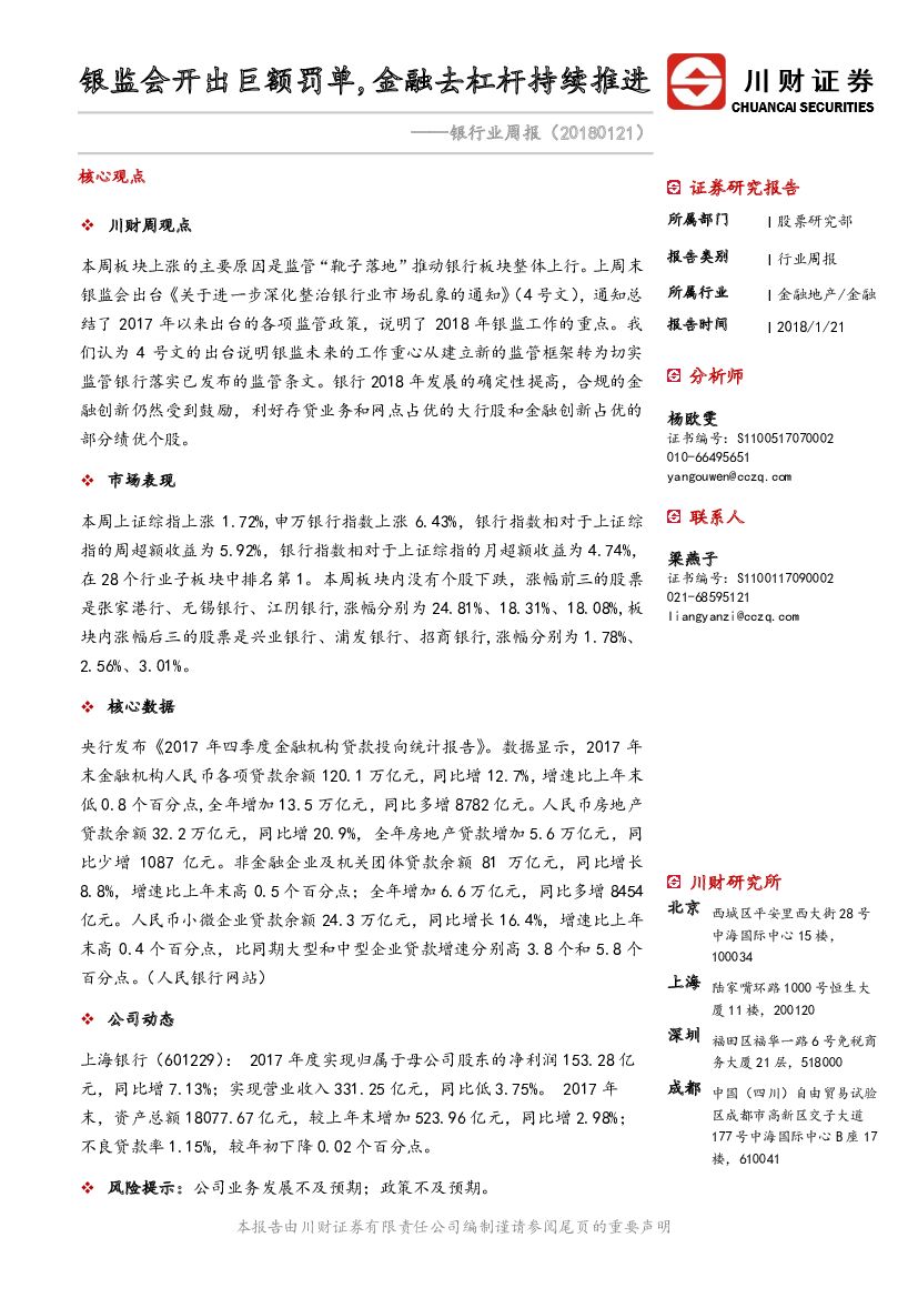 川财证券:银行业周报:银监会开出巨额罚单,金融去杠杆持续推进.pdf