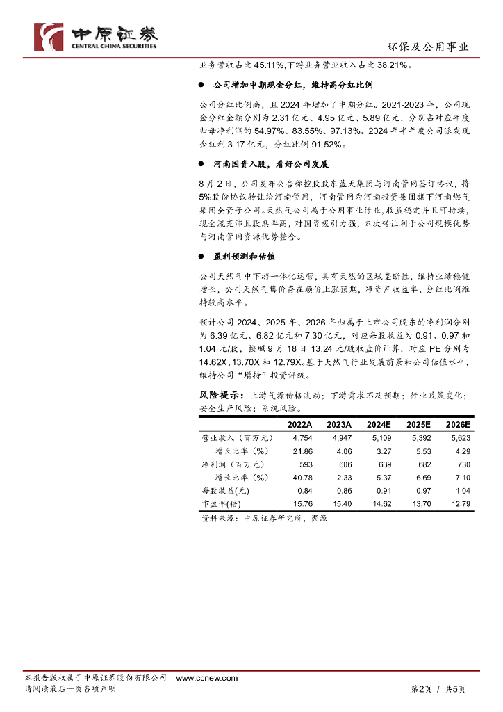 中原证券:蓝天燃气(605368)-中报点评:地方国资入股,增加中期分红.pdf