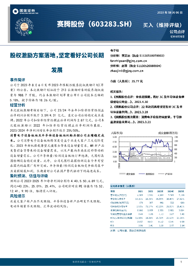 国金证券:赛腾股份(603283)-股权激励方案落地,坚定看好公司长期发展.pdf