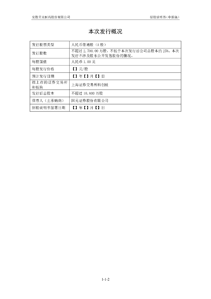 安徽贝克制药股份有限公司上交所科创板IPO上市招股说明书.pdf