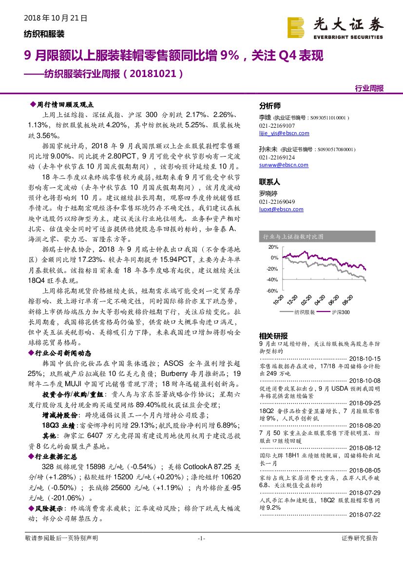 光大证券:纺织服装行业周报:9月限额以上服装鞋帽零售额同比增9%,关注Q4表现.pdf