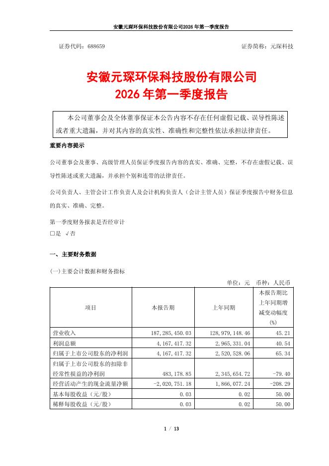 688659-元琛科技:2026年第一季度报告.pdf