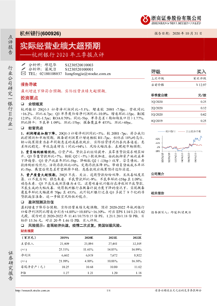 浙商证券:杭州银行2020年三季报点评:实际经营业绩大超预期.pdf