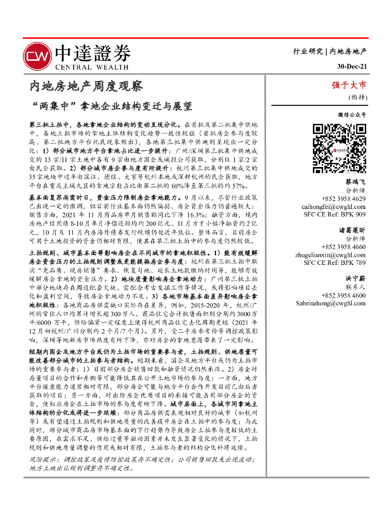 中达证券投资:内地房地产周度观察:“两集中”拿地企业结构变迁与展望.pdf