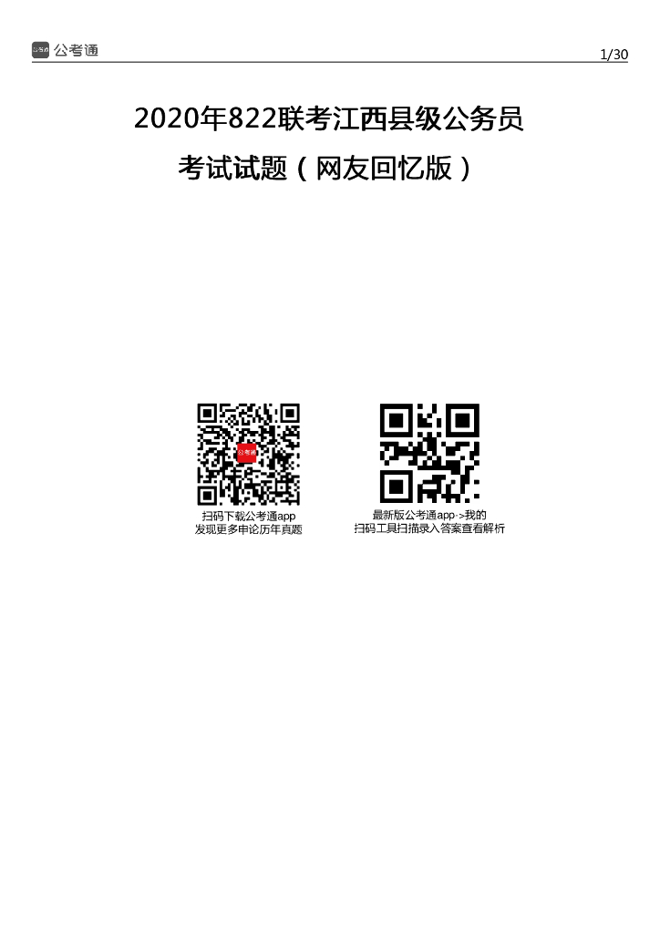2020年江西公务员考试行测试题及答案(县级).pdf