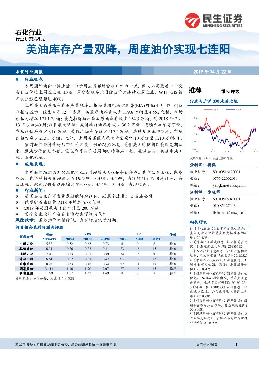 民生证券:石化行业周报:美油库存产量双降,周度油价实现七连阳.pdf