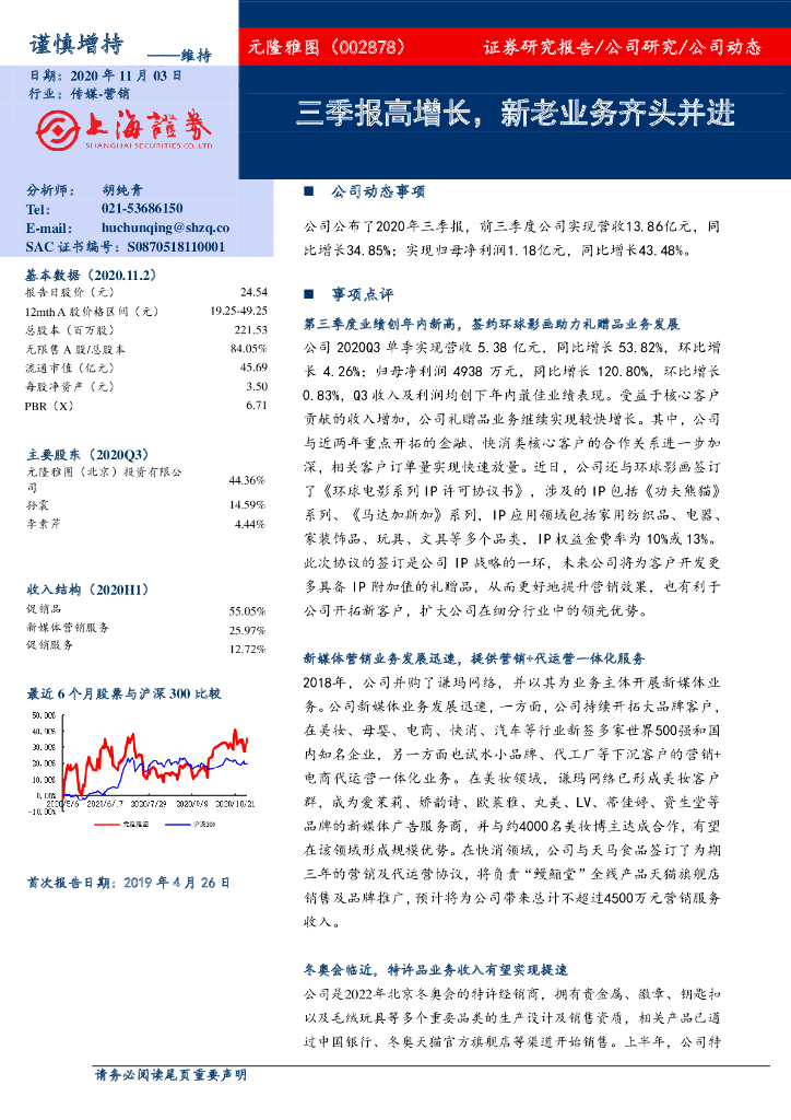上海证券:元隆雅图(002878)-三季报高增长,新老业务齐头并进.pdf