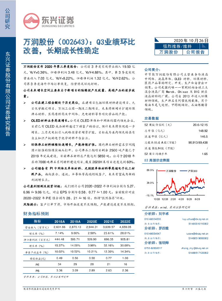 东兴证券:万润股份(002643)-Q3业绩环比改善,长期成长性确定.pdf