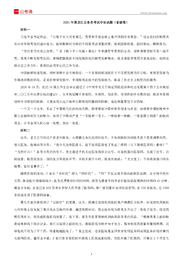 2021年黑龙江公务员考试申论试题(省级卷).pdf