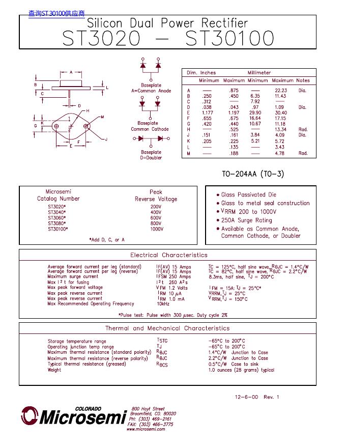 Microsemi ST3020 - ST30100 数据手册.pdf