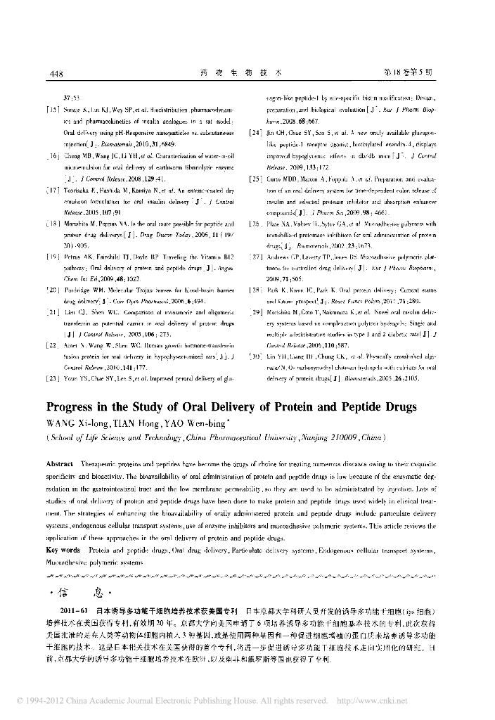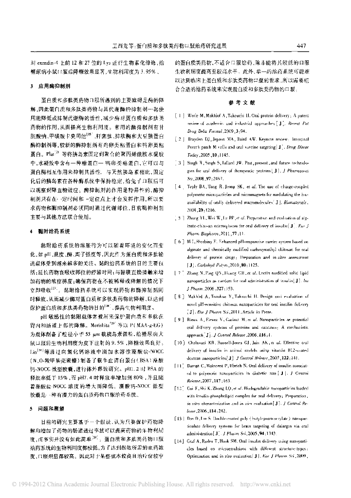 《药学的生物化学基础》文献资料-蛋白质和多肽类药物口服给药研究进展.pdf