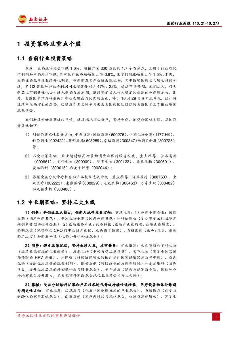 西南证券:医药行业周报:创新药产业链三季报业绩表现靓丽.pdf